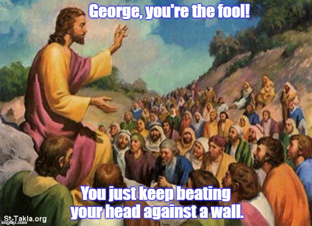George laughed, Why would She get mad? Actually, She doesn’t get mad in the way of thinking that we normally use...and She surely doesn’t get mad the way we humans do. She does get disappointed. Yes, She’s almost in a state of terminal disappointment, especially now looking at the world and what’s going on out there.